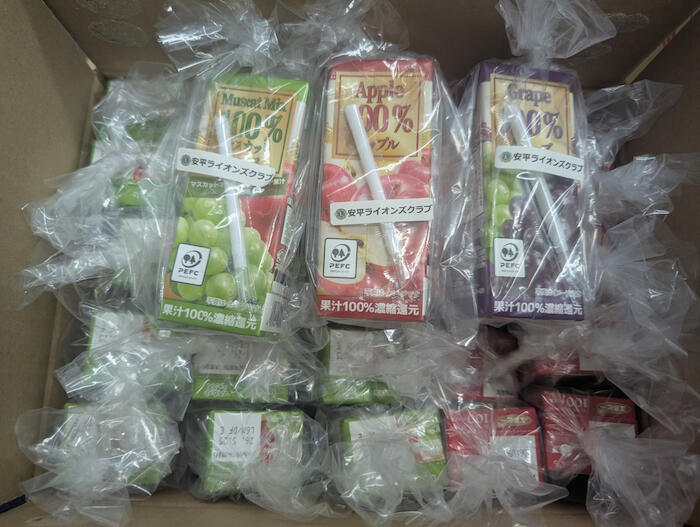 町内3ヶ所で献血が実施され、協力者に100%ジュースを進呈しました。 金額…6,138円
