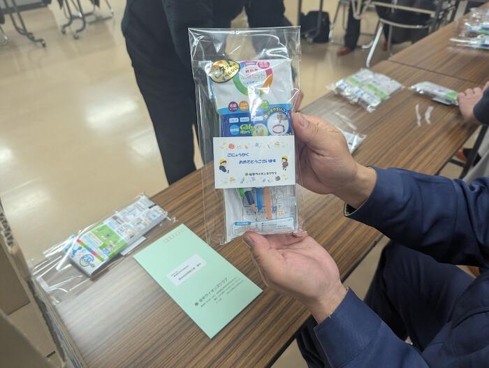 3月 17 新入学児童へ入学祝進呈 2026年03月31日(火) アクティビティ 安平ライオンズクラブ NEW 新入学児童へ入学祝として文房具セット(定規・コンパス)を教育委員会を当して進呈いたします。 また、例会に於いて、入学祝メッセージカードを入れて袋詰め作業をおこないました。 入学式当日、新一年生へ贈られます。 労力ACT…3H 金額 62,700円