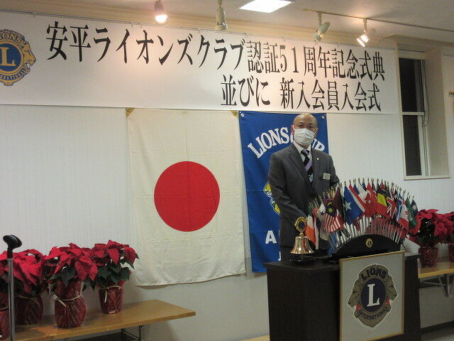 12月 03 安平ライオンズクラブ結成51周年記念式並びに新入会員入会式 2022年12月07日(水) ミーティング 安平ライオンズクラブ むかわライオンズクラブ会長L両川武弘はじめ役員の方をお招きし、式典を開催致しました。 式ではモナーク50年L照井靖幸、100%出席賞12名の表彰も行いました。 また、新入会員3名に会長よりLバッチが贈られました。