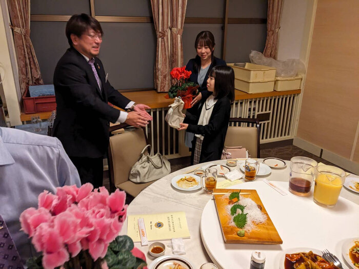 会長より、会員の皆さんのご家族への感謝を込めてお花等のプレゼントを贈りました。