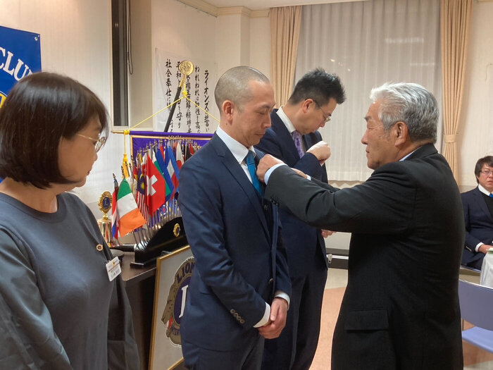 また、今年度5名の新入会員を迎え、会長より新入会員へバッチの寄贈が行われました。