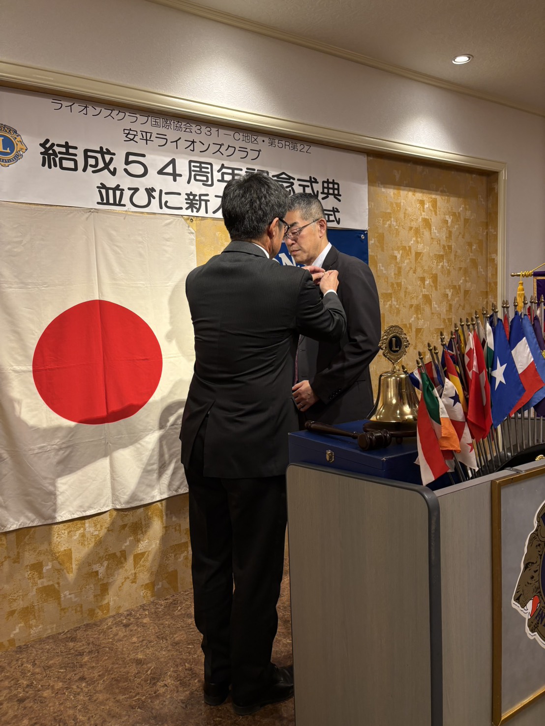 12月 06 安平LC結成54周年記念式並びに新入会員入会式開催 2025年12月25日(木) ミーティング 安平ライオンズクラブ 安平LC結成54周年記念式を町内・レストランしばらくにおいて開催いたしました。 式内において、モナーク賞・100%例会出席賞の表彰も行いました。 また、新入会員入会式を行い、Lのバッチを寄贈いたしました。