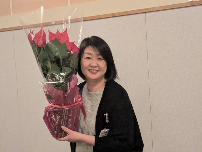祝賀会において、女性会員へのお花のプレゼントがありました。