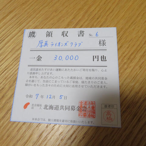厚真町社会福祉協議会へ歳末たすけあい運動義援金協力 *義援金額~30,0...