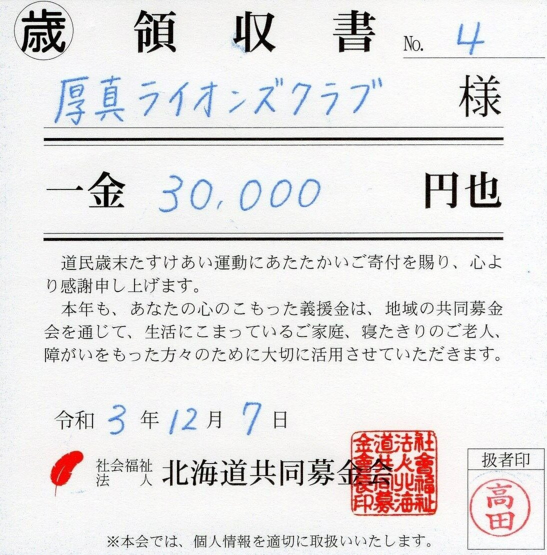 2021年12月08日(水) アクティビティ 厚真ライオンズクラブ