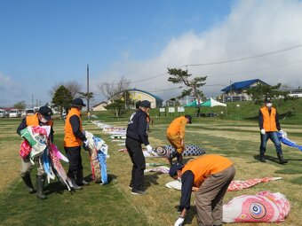 4月 27 鯉のぼり掲揚作業 2022年04月28日(木) アクティビティ 厚真ライオンズクラブ ECHO Vol.10 上厚真地区、パークゴルフ場にに70匹の鯉のぼりを掲揚。 例年、登下校の小中学生や町内外から訪れた人の楽しみとなっています。 *労力~44H *金銭~12,394円