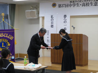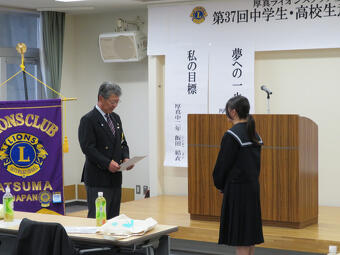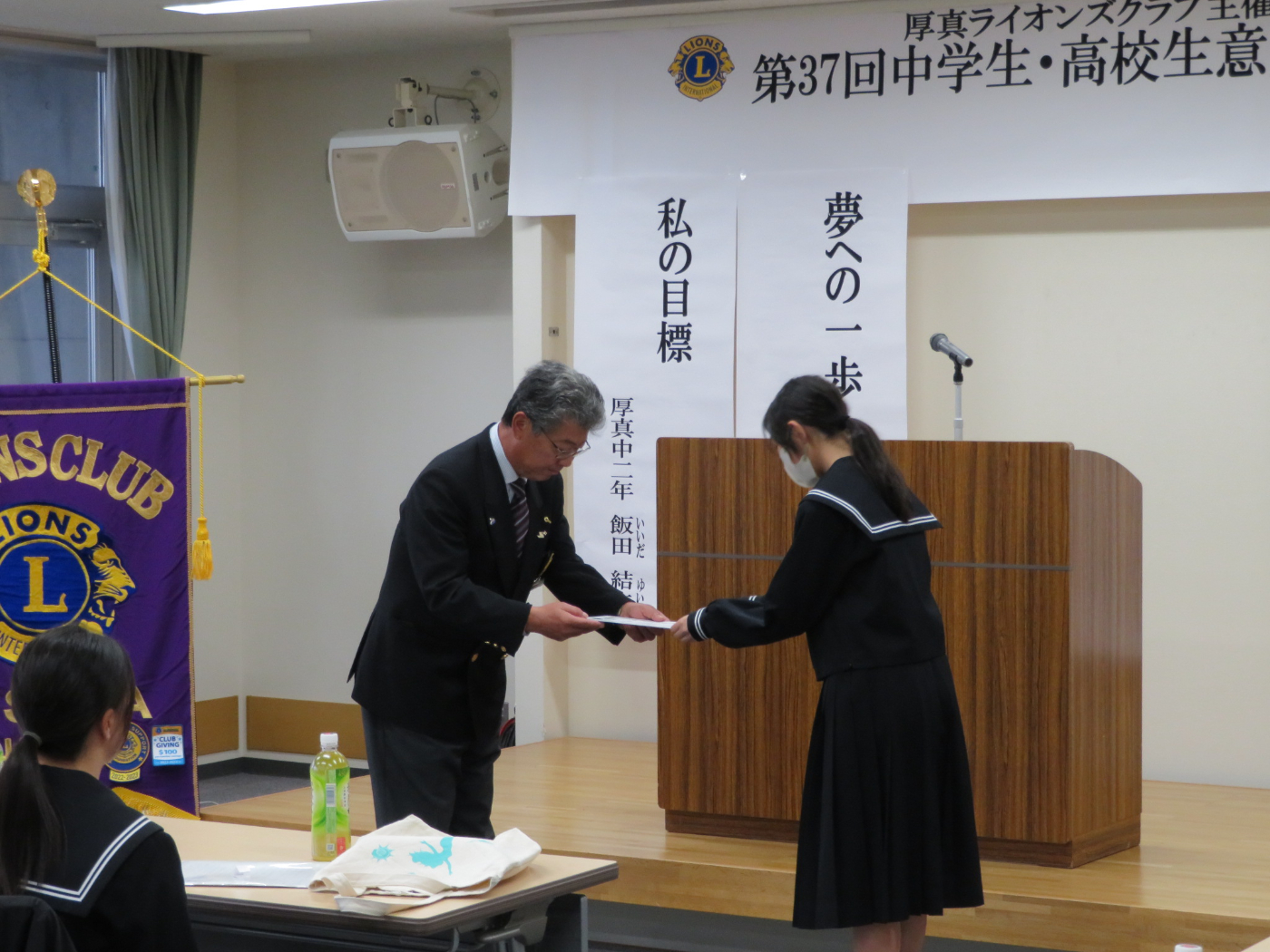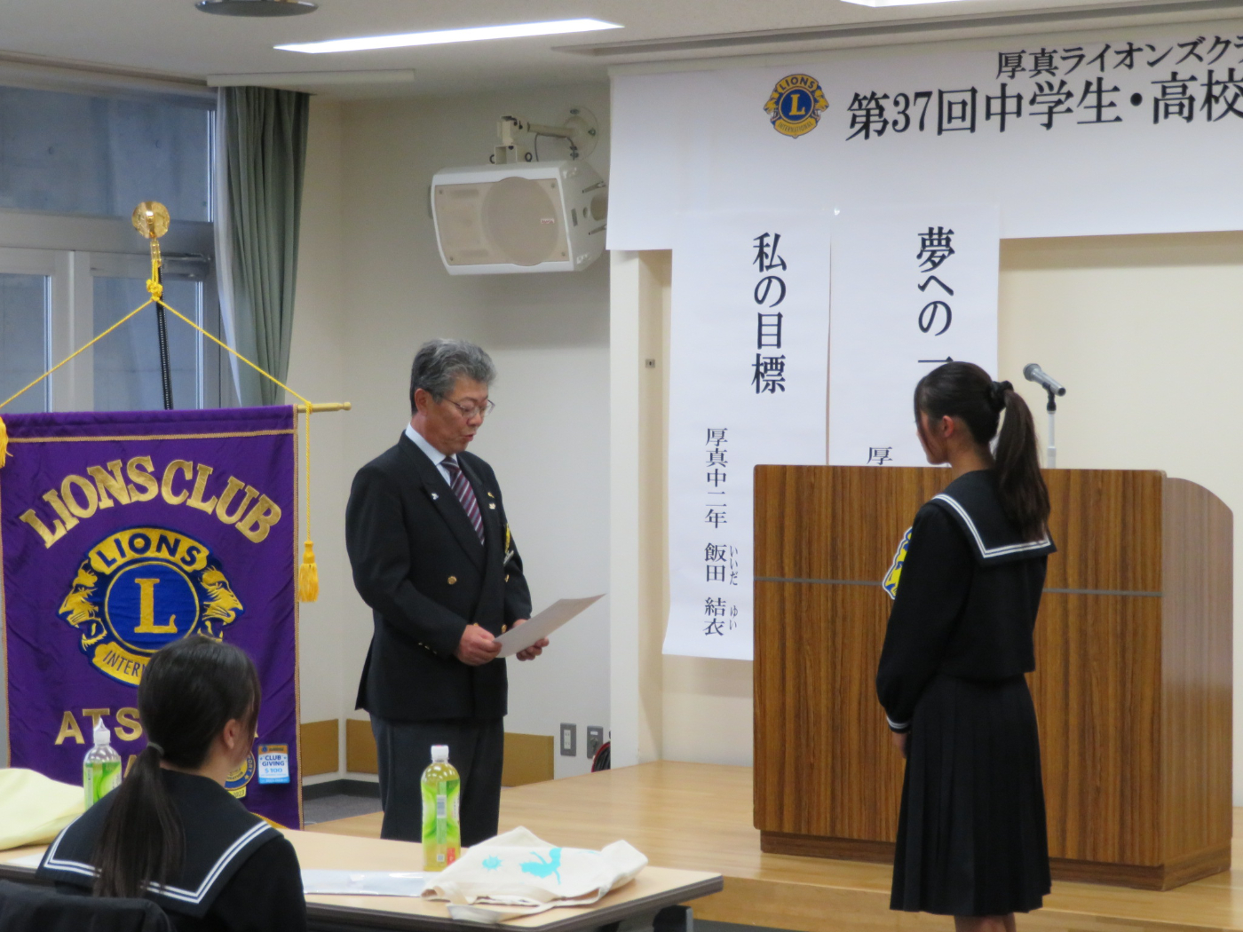 11月 01 第37回中学生・高校生意見発表会主催 2025年11月28日(金) アクティビティ 厚真ライオンズクラブ NEW あいにくの悪天候でしたが多くの方にお越しいただきました。 審査委員長 審査結果発表及び講評 厚真LC会長挨拶 11月1日(土)、「第37回中学生・高校生意見発表会」を主催。 町内の中学校から4名の生徒が参加し町教育長・町内各小学校校長はじめ5名の審査員で各賞を審査。 表彰式にて受賞者に副賞として図書カードを贈呈しました。 各生徒の熱弁に会場から大きな拍手が響いていました! *労力~85H *金銭~39,542円