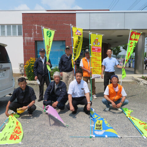 夏の交通安全運動街頭啓発に参加協力。厚真市街地十字路交差点にて「安...