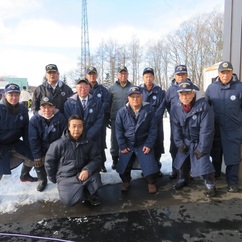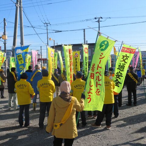 厚真市街地交差点に於いて交通安全運動に参加協力。 14名のメンバーが参...
