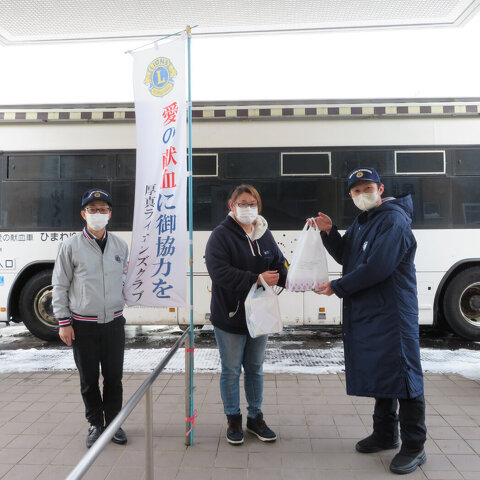 厚真町ケアセンターゆくり前にて献血協力を呼びかけ。 献血量~25,800ml ...