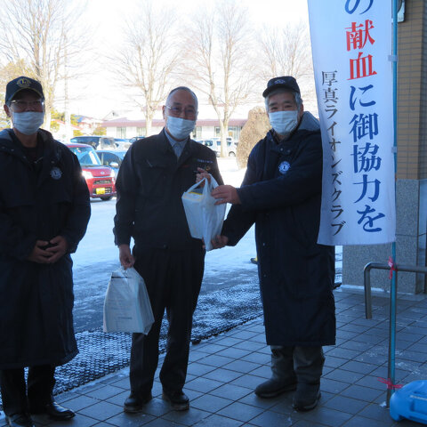 厚真地区で献血呼びかけ協力。 厚真町から「町指定ごみ袋」と厚真LCから...