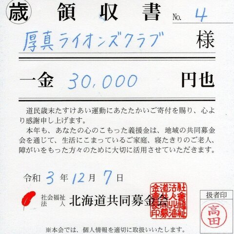 LCIF寄付 金銭30,000円(30L×1,000円)