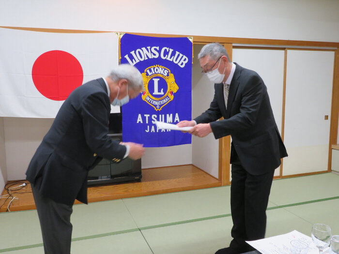 3月 21 新入会員入会式・3月第一例会開催 2023年03月24日(金) ミーティング 厚真ライオンズクラブ 3月第一例会に於いて 新入会員入会式と歓迎会を実施。 会長より「認証状/ライオンバッチ」を贈呈。