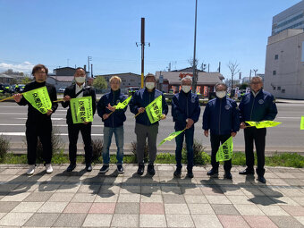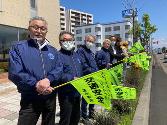 青天の中、「春の全国交通安全運動」セーフティコール 旗の波運動に参加しました。