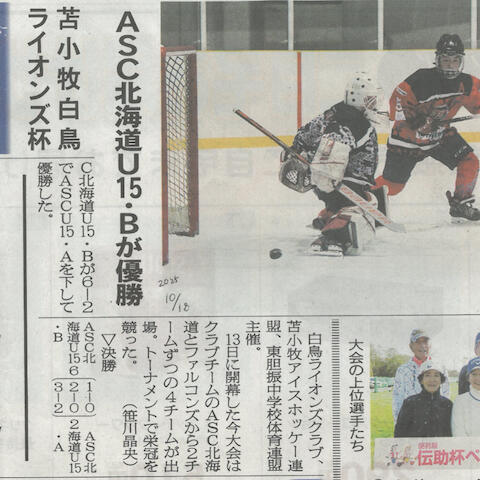 10月 18苫小牧白鳥ライオンズクラブ杯争奪東胆振中学校アイスホッケー大会開催