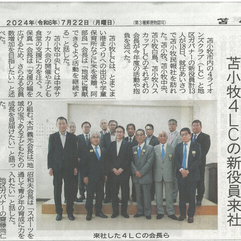 2024年度の4LC新役員が7月18日(木)公式訪問のため苫小牧を訪れていた...