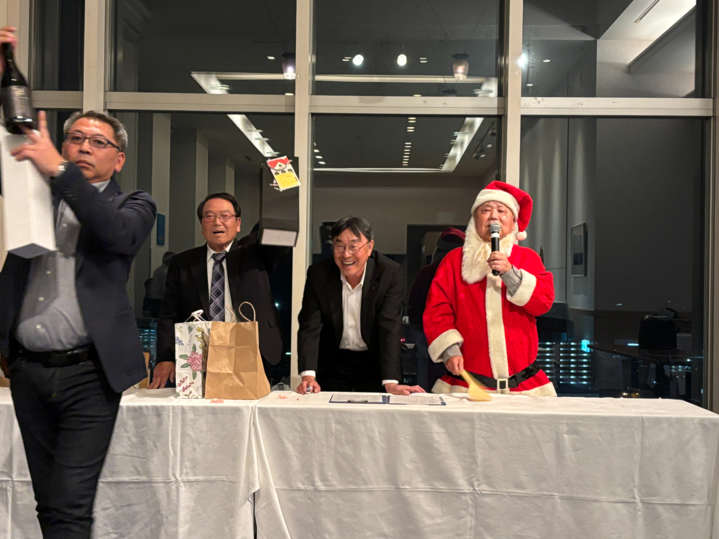 12月 03 Xmasパーティ<12月第1例会> 2025年12月18日(木) ミーティング 苫小牧白鳥ライオンズクラブ NEW 12月第1例会は、グランドホテル16階でのグランビューにてクリスマスパーティーを行い、参加者が持ち寄った品物のオークションを行いました。合計123,000円が集まりました。計画委員会の皆さん、会員の皆さん、ご協力ありがとうございました。苫小牧市への福祉用具寄贈に充てられます。